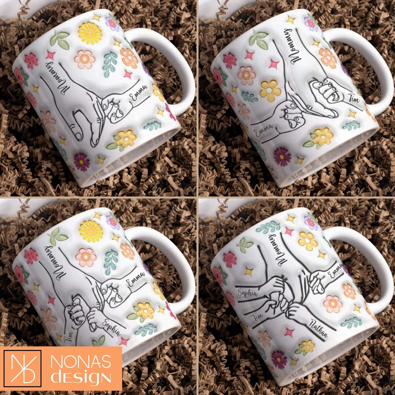 Mok hand met naam tot aan 13 handjes.